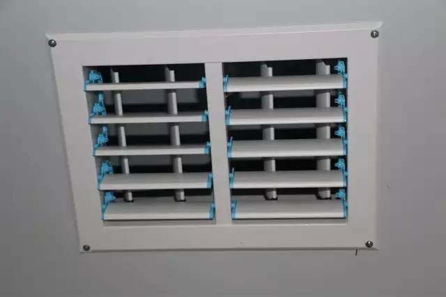 另外,送风口设有塑钢电动摇摆风咀,风咀可通过线控面板控制左右自动摆风,保证每个员工有风。
