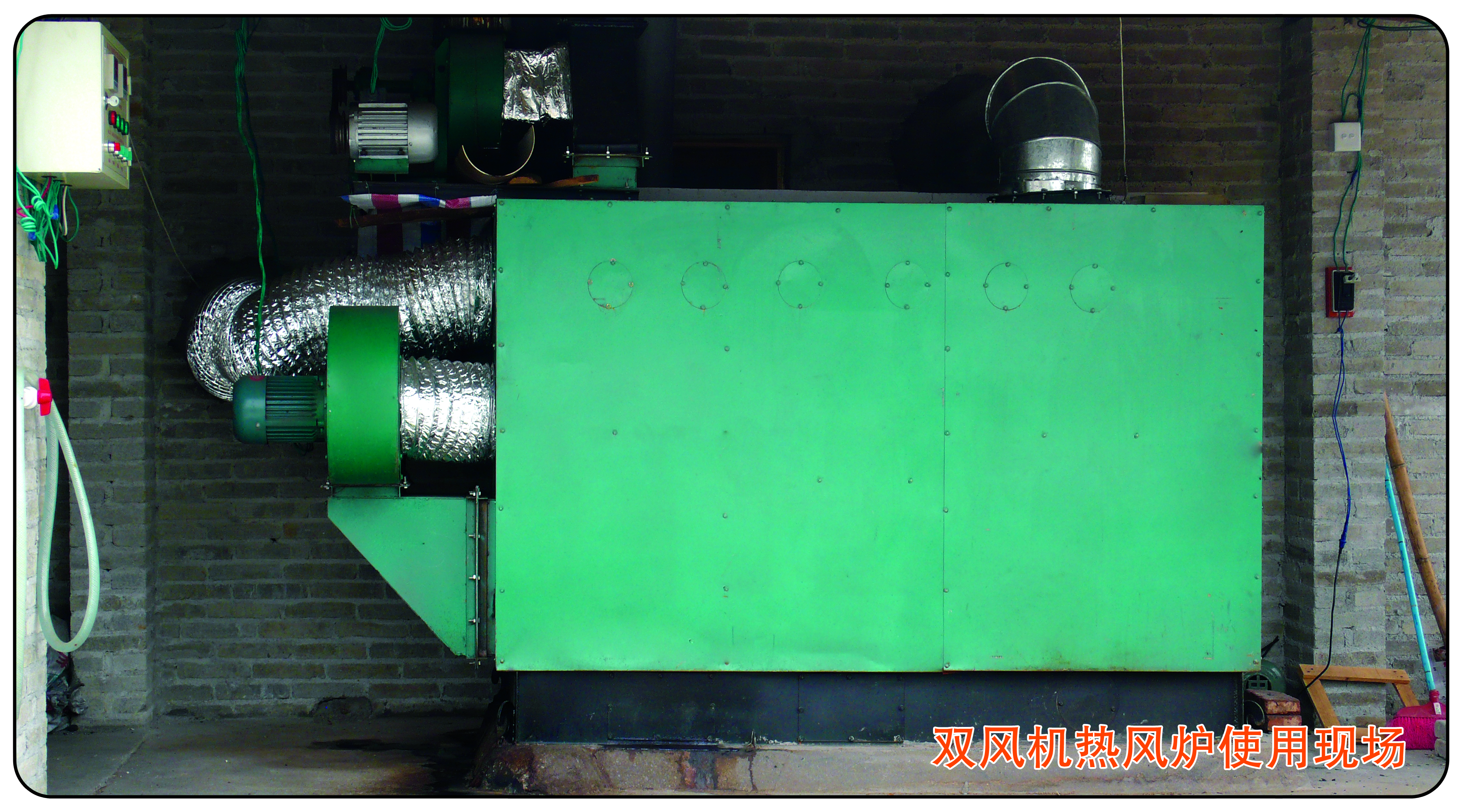 双风机热风炉标准配置了内循环与外循环管道,在育雏期使用内循环功能能节省30%左右的热能。育雏期结束后,使用外循环功能,热风炉吸收外部的新鲜空气加热后送入舍内,在加温的同时,具有换气的效果,使畜禽舍保持一个良好的空气环境,称为主动通风。现在的外循环管道更是接到锅炉房外,避免了锅炉房内的烟尘污染鸡舍。保证了空气的新鲜度,降低鸡患病的概率。